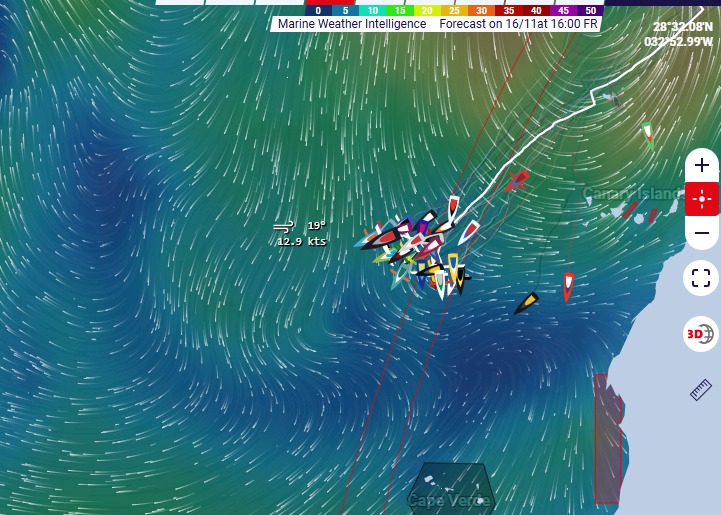 Az borítékolható, hogy ez az eredmény nem lesz tartós, a következő 24-48 órás széltérképek mind az mutatják, hogy mezőny jelentős rész lekerüli őt, mert kisebb utat kell megtenniük az utat eltorlaszoló szélcsendes zónában. A mezőny amúgy fantasztikusan összezárt, le Camot nem számítva 30 hajó van 120 mérföldes távolságon belül. A hátsó traktus teljesen felzárkózott, sőt azok, aki a nagy szélcsend-kikerülő manőverben legelőször borítottak le dél felé, most át is vették a vezetést. Az eddigi nagymenők – Dalin, Lunven, Simon, Goodchild, Ruyant és mások – a reggeli tracking szerint még kitartottak a nyugati irány mellett, ezért most az célirány felé hajózó Giancarlo Pedote, Benjamin Ferré, Alan Roura, Damien Seguin vezetik a bolyt. Csak 6. az eddig többször vezető Sam Goodchild, 8. Sébastien Simon, 15. Nicolas Lunven, 25. Charlie Dalin, 26. Jeremie Beyou, és 28. Yoann Richomme, és 29. Thomas Ruyant, csupa olyan fej, aki már bizonyította a sebességi előnyét, és eddig az élmezőnyben hajózott.